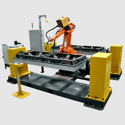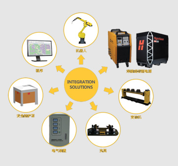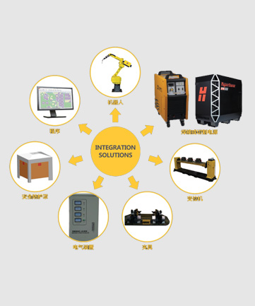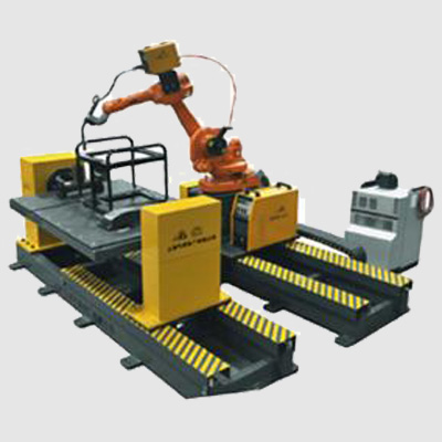 d88尊龙z6机器人工作站结构主要由:机器人、焊接或切割电源、变位机、夹具、电气装置、安全防护罩等组成。